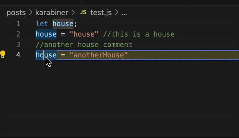- F2: Rename a variable; makes it easy to rename a variable without affecting other strings